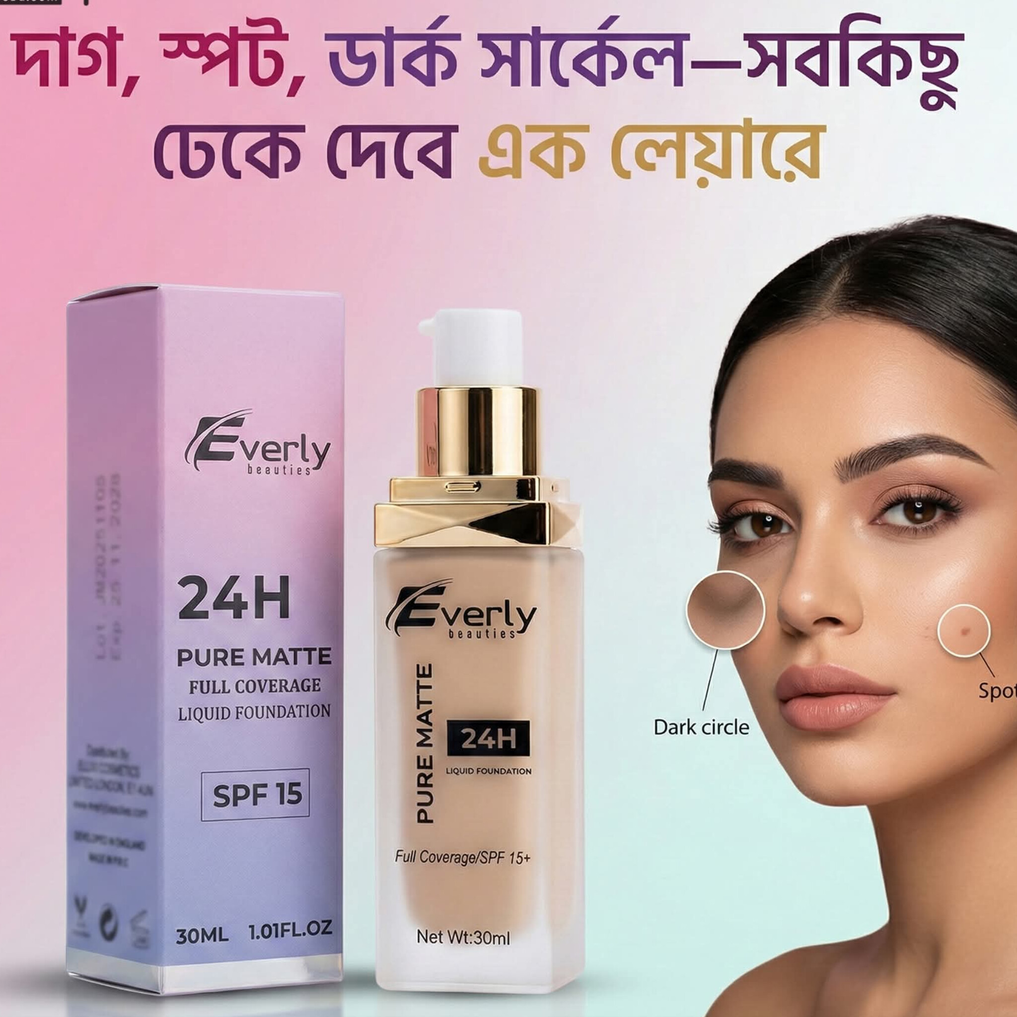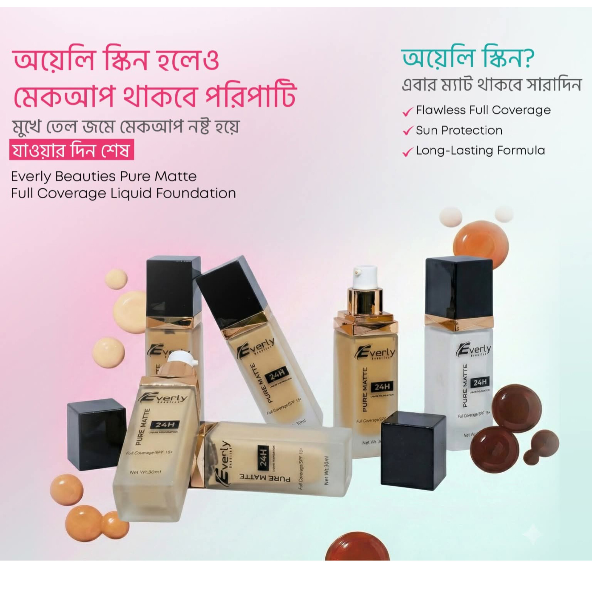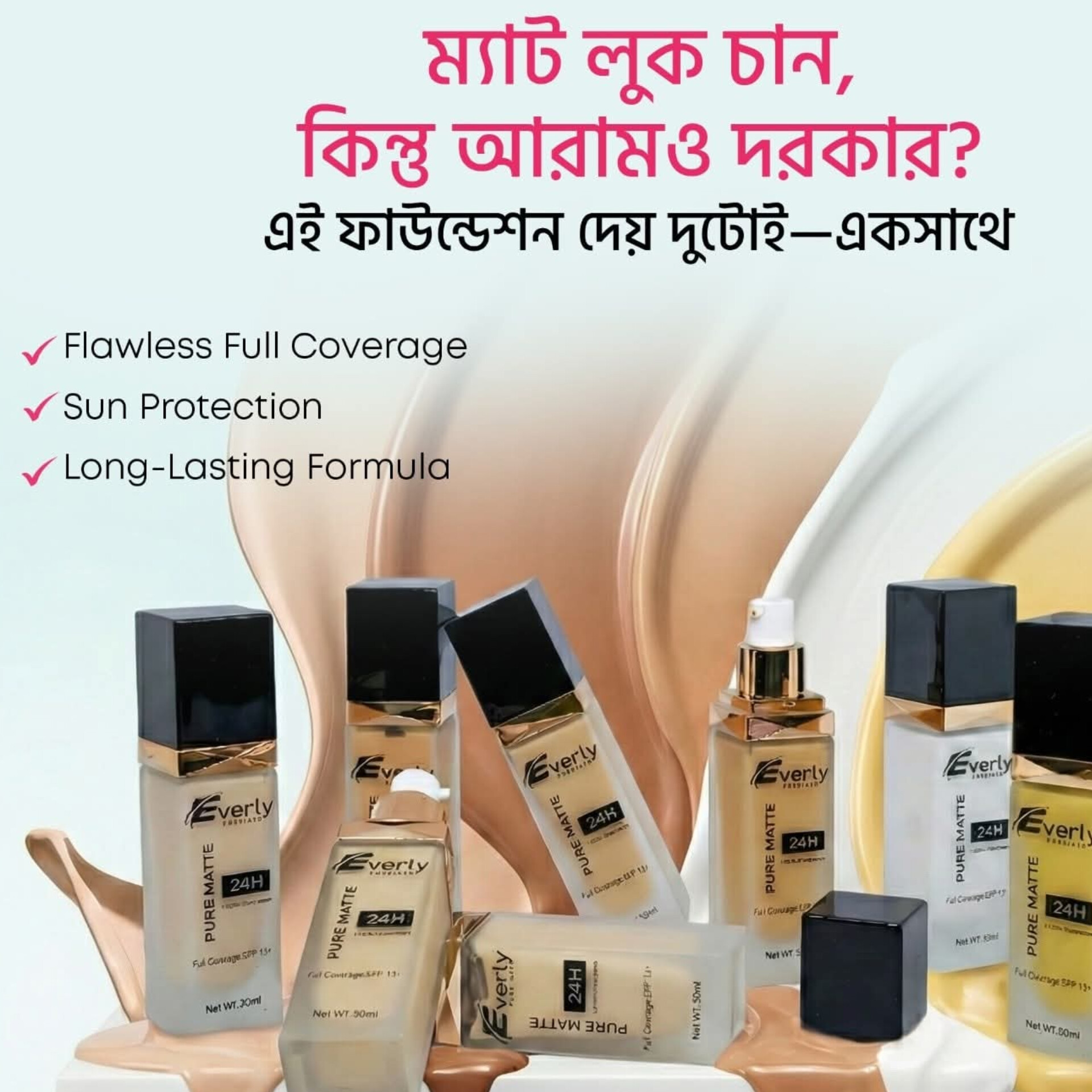 Everly Beauties Foundation Pure Matte Full Coverage Liquid Foundation with Spf 15+